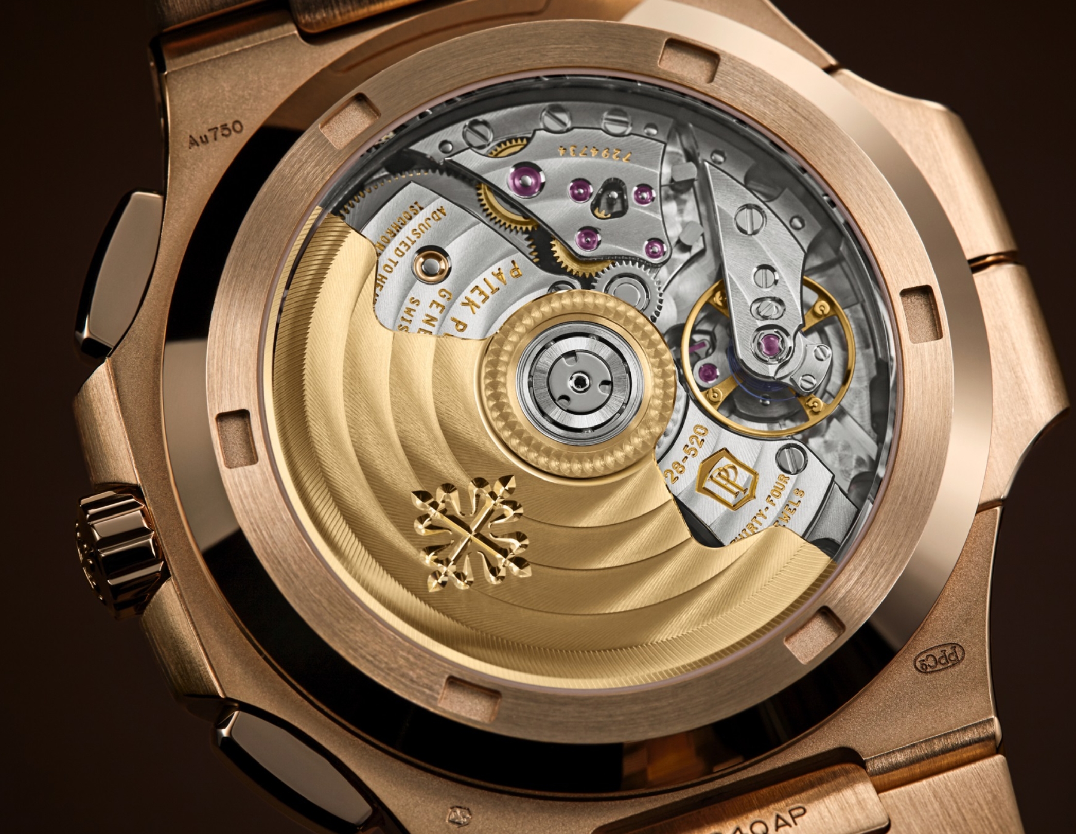 Rose gold. Case diameter (10-4 o'clock): 40.5 mm. Thickness: 12.53 mm. Water-resistant to 30 meters. Screw-down crown. Sapphire crystal case back.