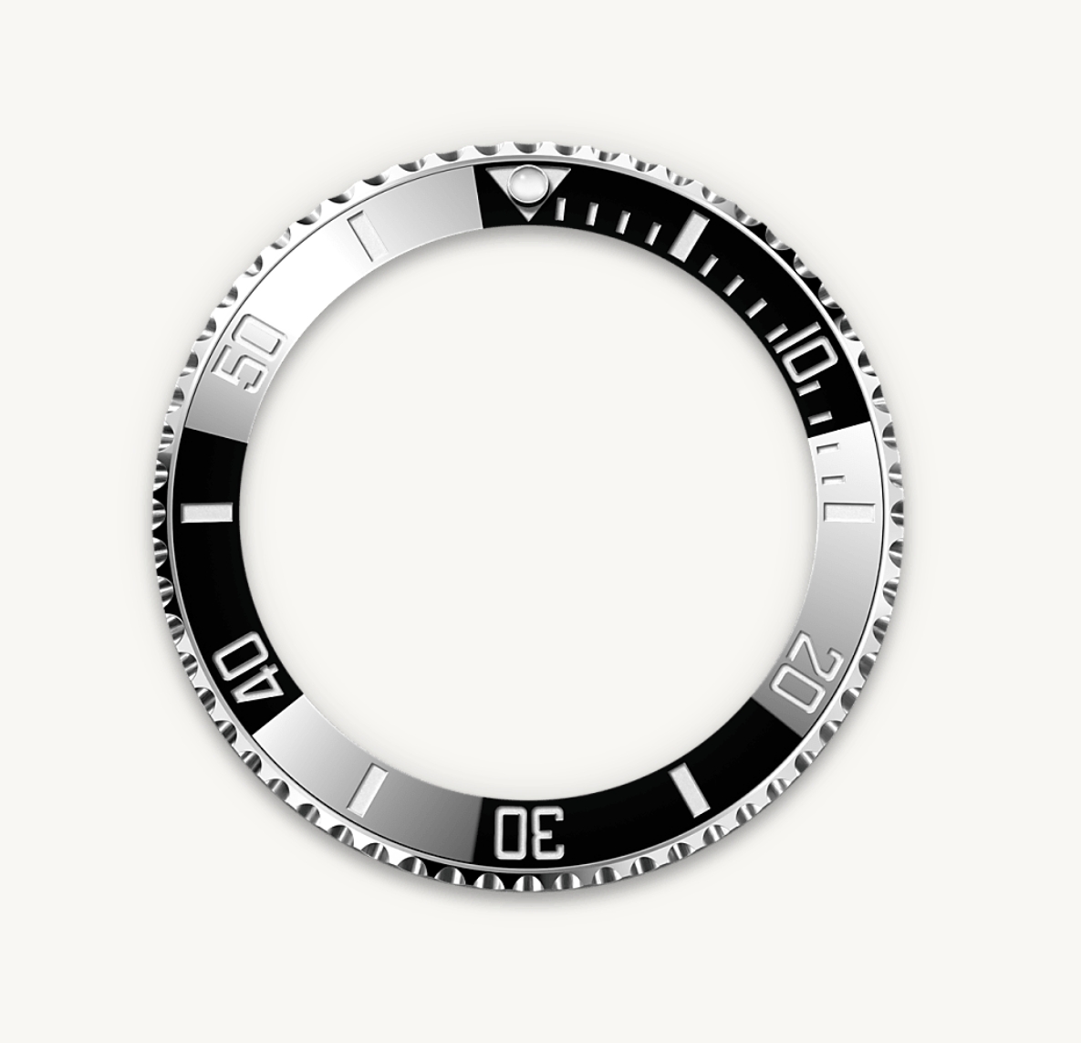 The Submariner's rotatable bezel is a key functionality of the watch. Its 60-minute graduations allow a diver to accurately and safely monitor diving time and decompression stops. Manufactured by Rolex from a hard, corrosion-resistant ceramic, the Cerachrom bezel insert is virtually scratchproof. A luminescent capsule on the zero marker ensures legibility, no matter how dark the environment. The bezel’s knurled edge is carefully designed to offer excellent grip under water, even with gloves.