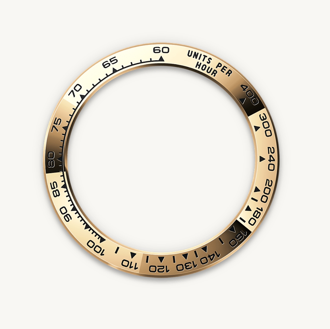 With its tachymetric scale, its three counters and its pushers, the Cosmograph Daytona was designed to be the ultimate timing tool for endurance racing drivers. The bezel features a tachymetric scale to read average speed over a given distance based on elapsed time. This scale offers optimal legibility, making the Cosmograph Daytona the ideal instrument for measuring speeds up to 400 units per hour, expressed in kilometres or miles.