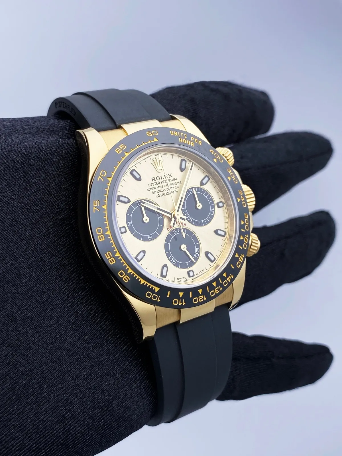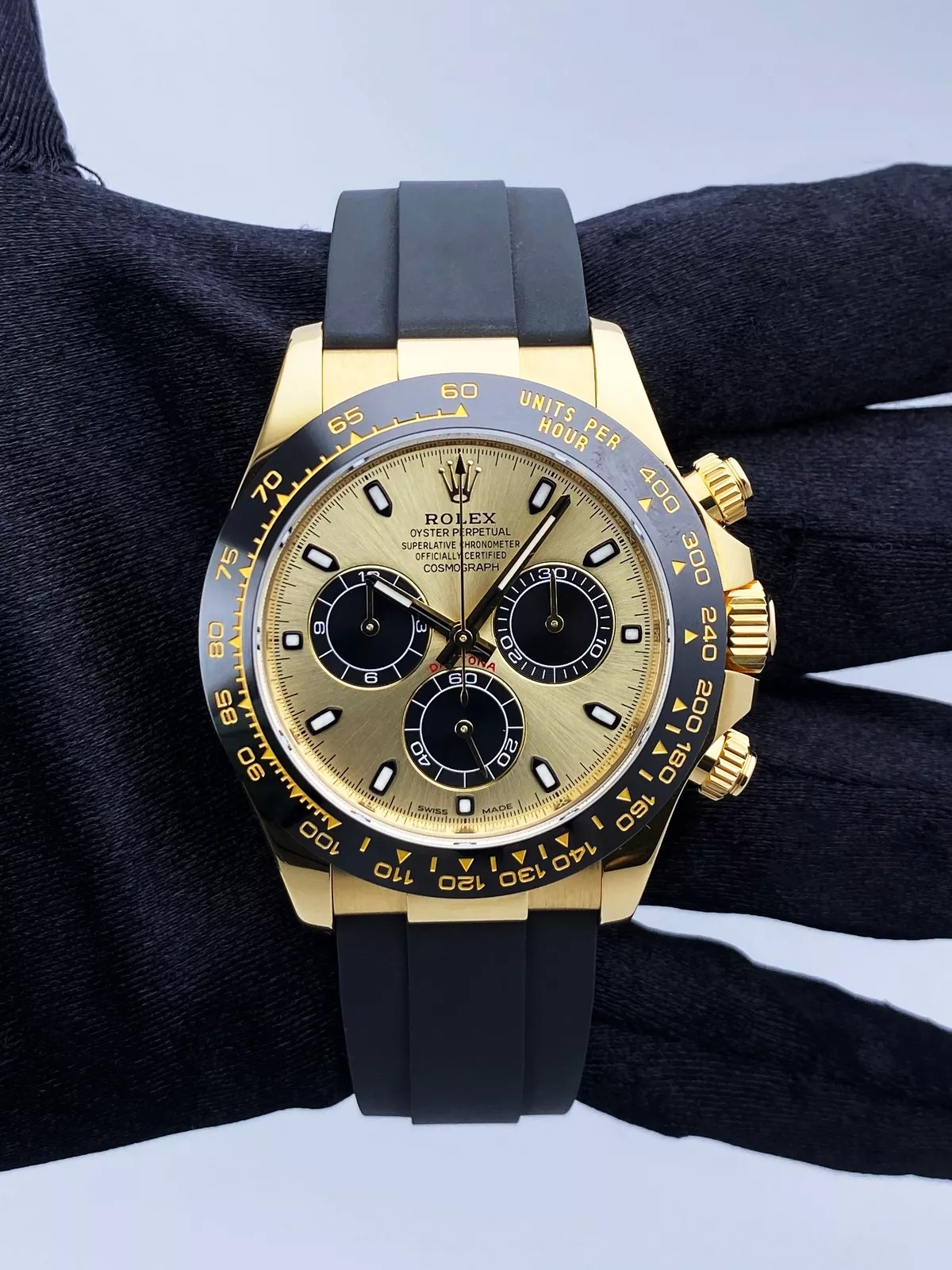 Launched in 1963, the Cosmograph Daytona has long since transcended its status in the world of watchmaking to become an icon. Its name, inextricably linked to the famous racetrack, as well as its graphic face, have made it a legend. Yet it is at the heart of this exceptional chronograph that the true mechanics of the legend beat: a movement designed and produced entirely by the Rolex Manufacture that delivers superlative performance in all circumstances. Constantly improved and refined over time, the Cosmograph Daytona has proved to be as reliable as it is precise.